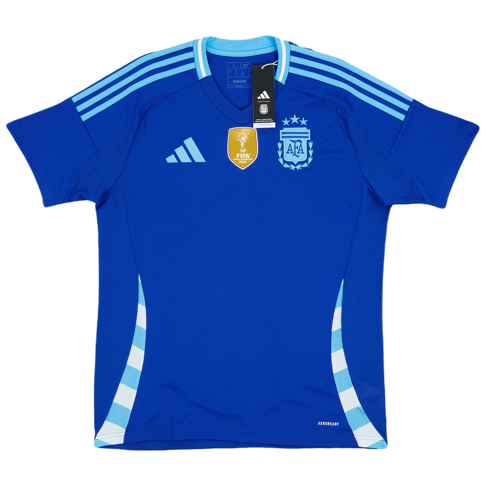 The blue color of the Argentina 2024 away kit is similar to that of Argentina's away kits until the end of the 90s before navy became the regular choice. The federation badge will have a two-tone colorway in sky blue and white.