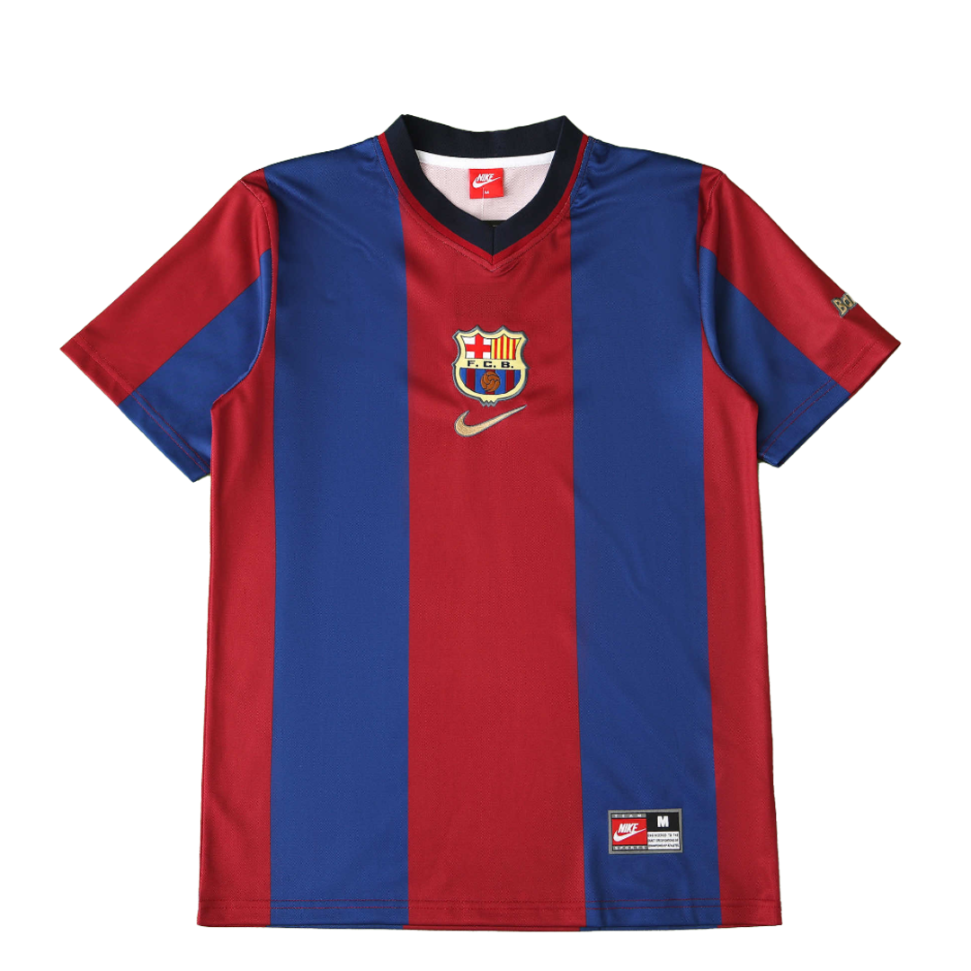 Get ready to support Barcelona in style with the retro 1998/99 Iconic Home Jersey! This Barcelona Kit is made from high-quality materials & features a sleek and classic design. This jersey was worn by players such as Rivaldo, Luis Enrique, and Patrick Kluivert during the 1998/99 season, a period of significant transition for the club under coach Louis van Gaal.