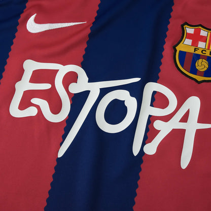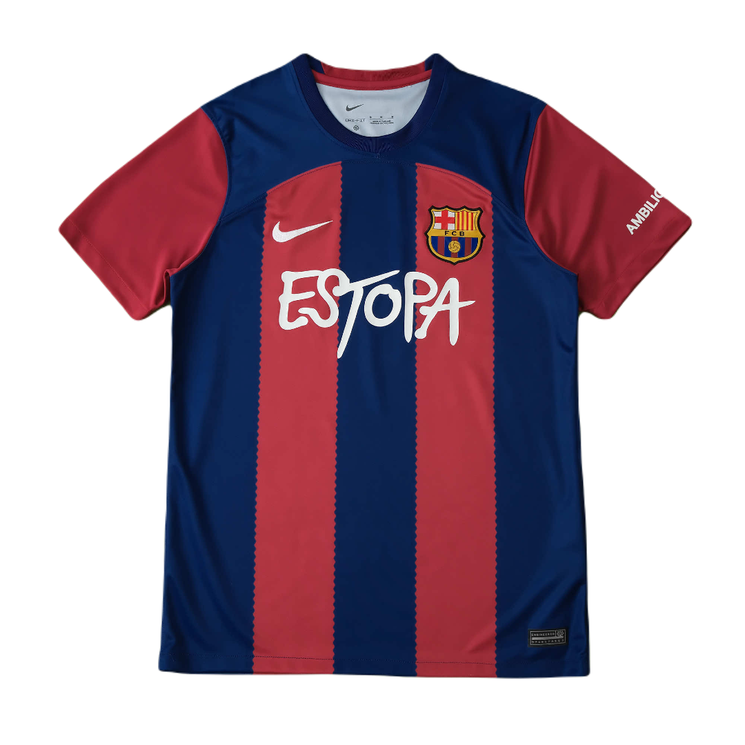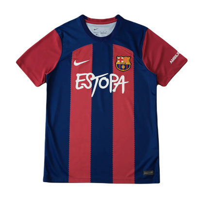 Get ready to support Barcelona in style with their 23/24 "Estopa" Jersey. Catalan giants FC Barcelona and Spotify revealed a special sponsor logo to celebrate Estopa dropping their new album on Spotify. Therefore, FC Barcelona's soccer jersey features the classic Estopa logo. This Barcelona Kit is made from high-quality materials & features a sleek and modern design.