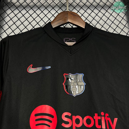 Get ready to support Barcelona in style with the 2024/2025 Away Jersey! This Black, Red and Blue colorway Kit is made from high-quality materials & features a sleek and modern design with the iconic Barcelona crest and the cool diamond graphic print.