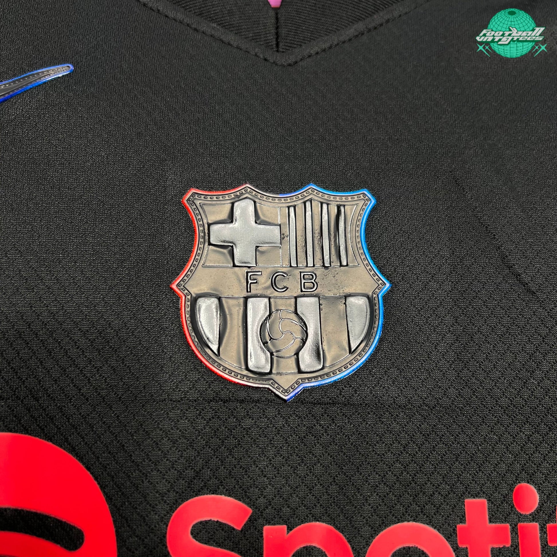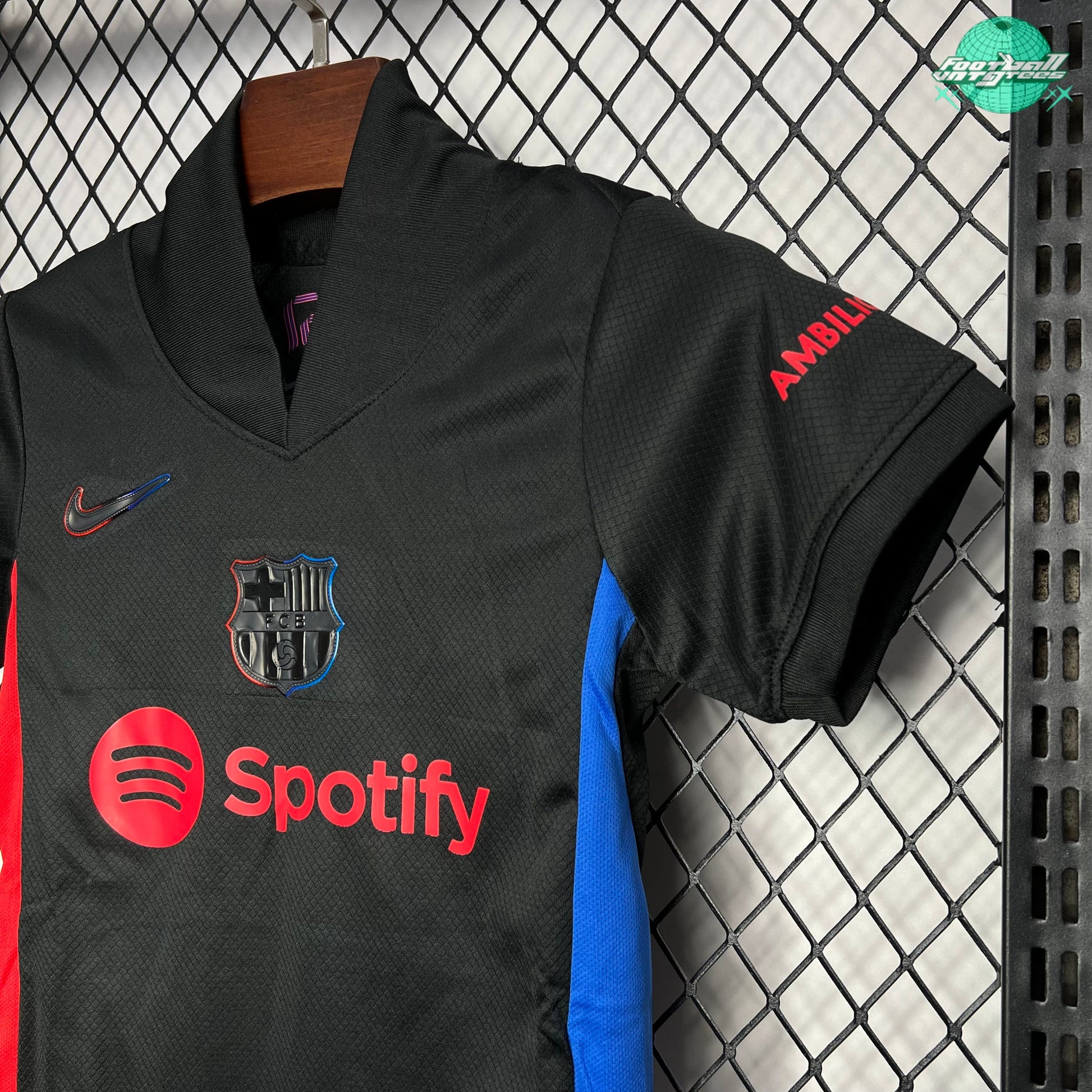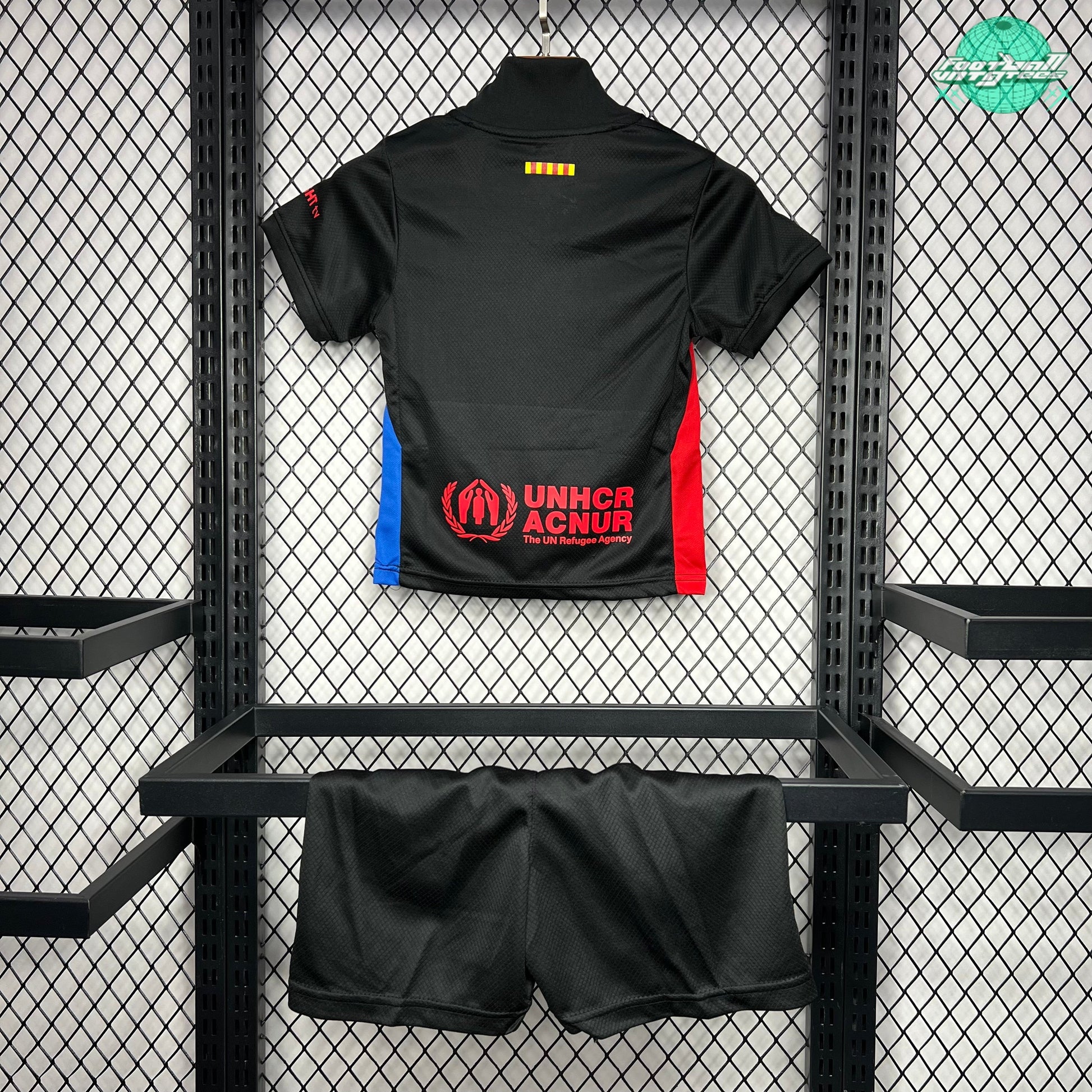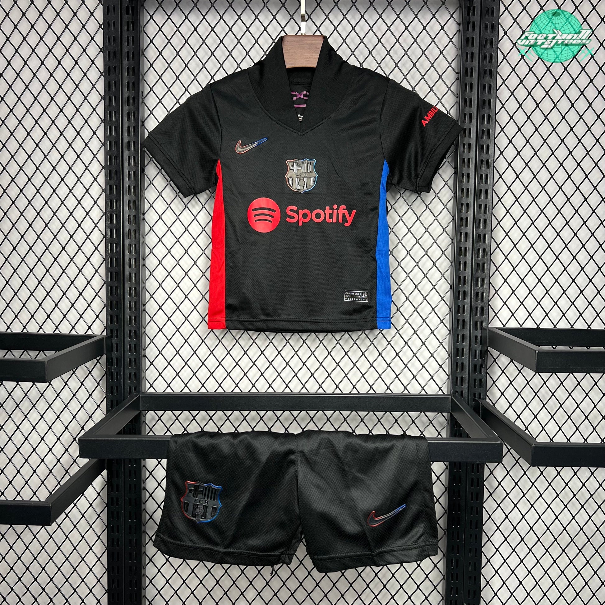 Get ready to support Barcelona in style with the 2024/2025 Away Kids Jersey & Pants! This Black, Red and Blue colorway Kit is made from high-quality materials & features a sleek and modern design with the iconic Barcelona crest and the cool 3D graphic print.