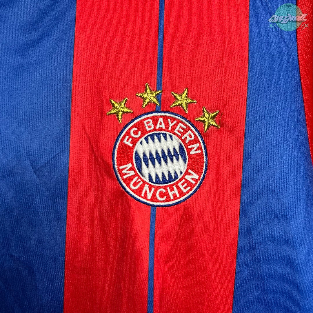 The Bayern Munich 2014-2015 home jersey is a historic piece that every fan and collector should consider. The new Bayern München 14-15 Home Kit features three vertical blue stripes. The last time Bayern had worn a blue / red striped kit was in 1995-96, when they won the UEFA Cup. Between the blue stripes on the front of the jersey feature small blue pinstripes. The badge of the FC Bayern München is placed on the red stripe on the left chest.