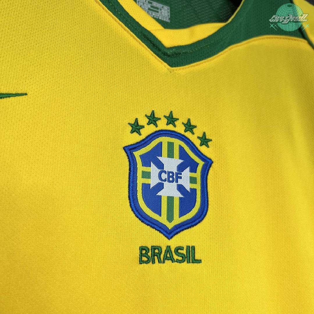 Experience the magic of Brazilian football with the Brazil 2004-2005-2006 Home Jersey. This iconic jersey, worn by Brazil’s national team during the 2004 World Cup qualifiers and other international fixtures, is a brilliant display of the classic canary yellow, with vibrant green accents on the collar and sleeves—colors that are synonymous with the beautiful game. The 2004 Brazil squad was packed with world-class talent, including legends like Ronaldinho, Ronaldo, and Kaká, who brought their unique blend of skill and samba style to every match they played.