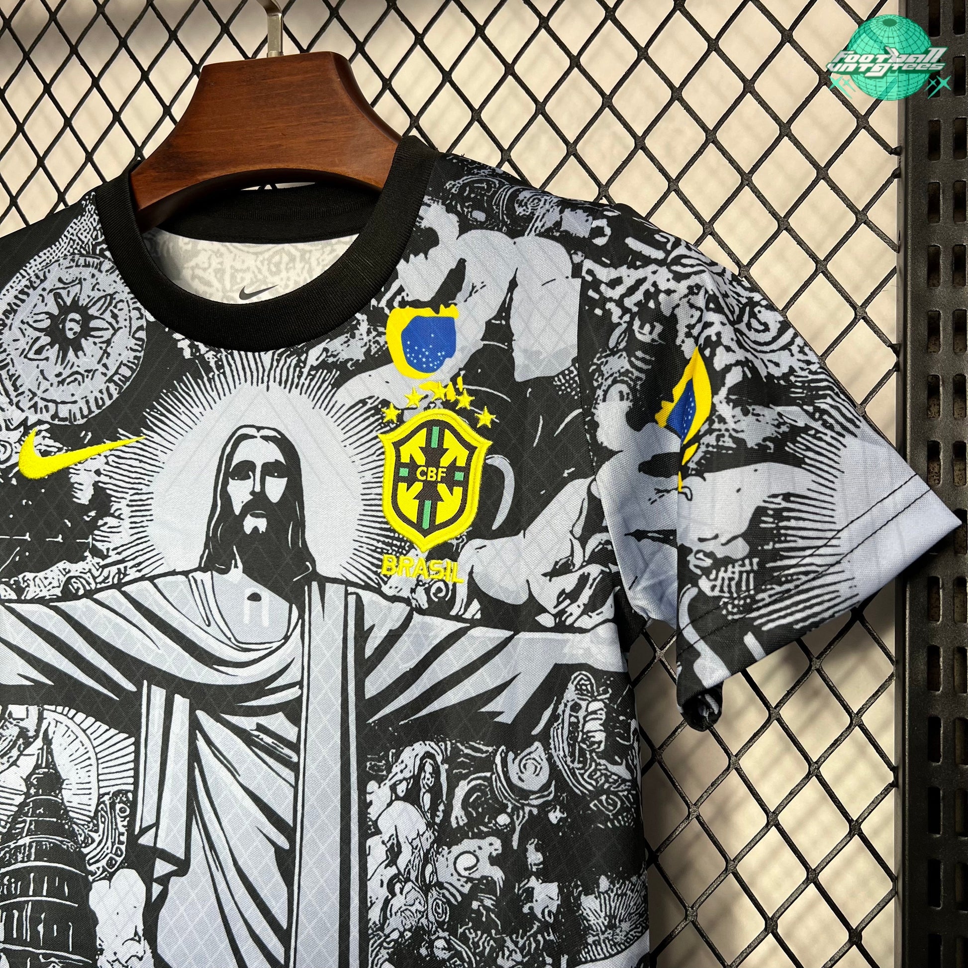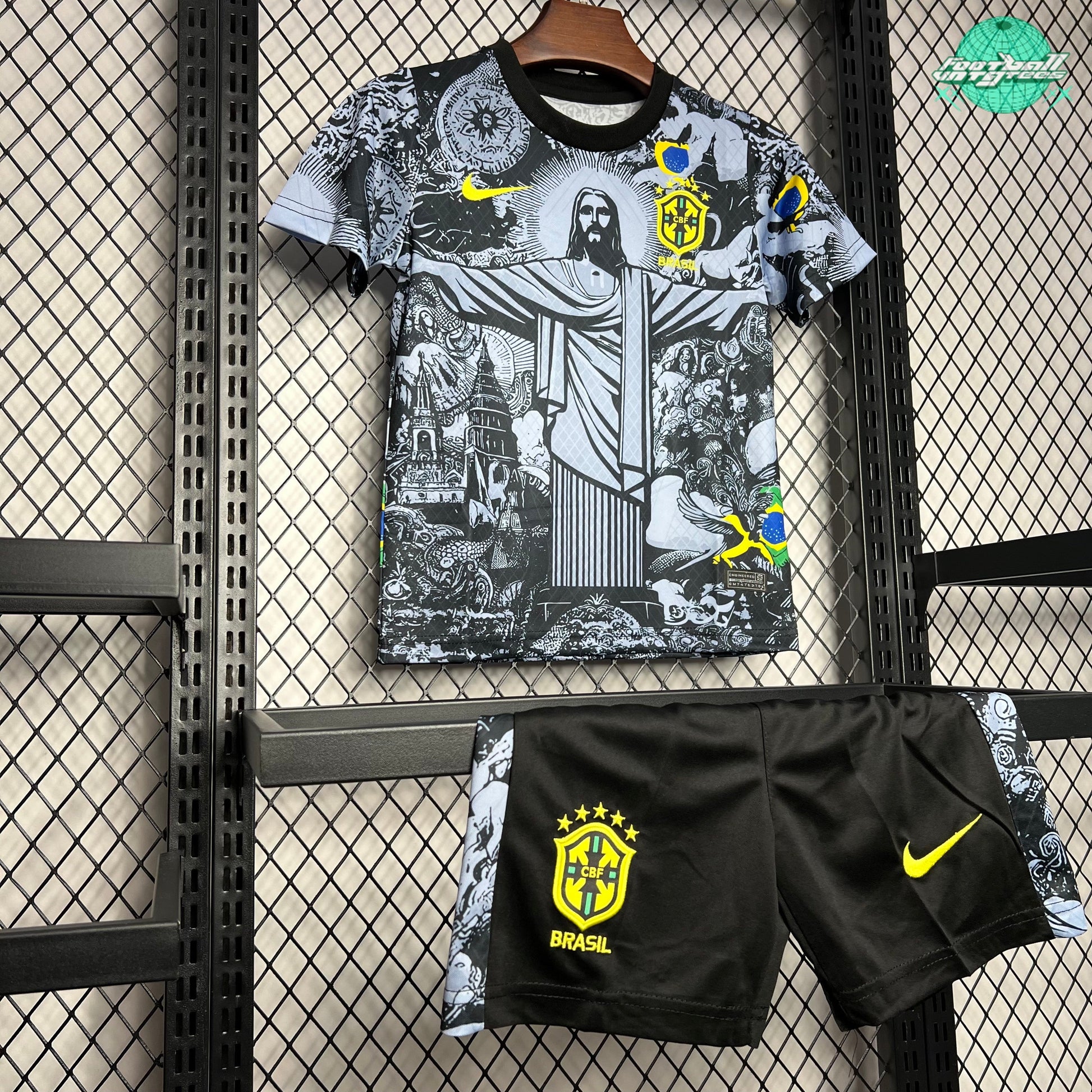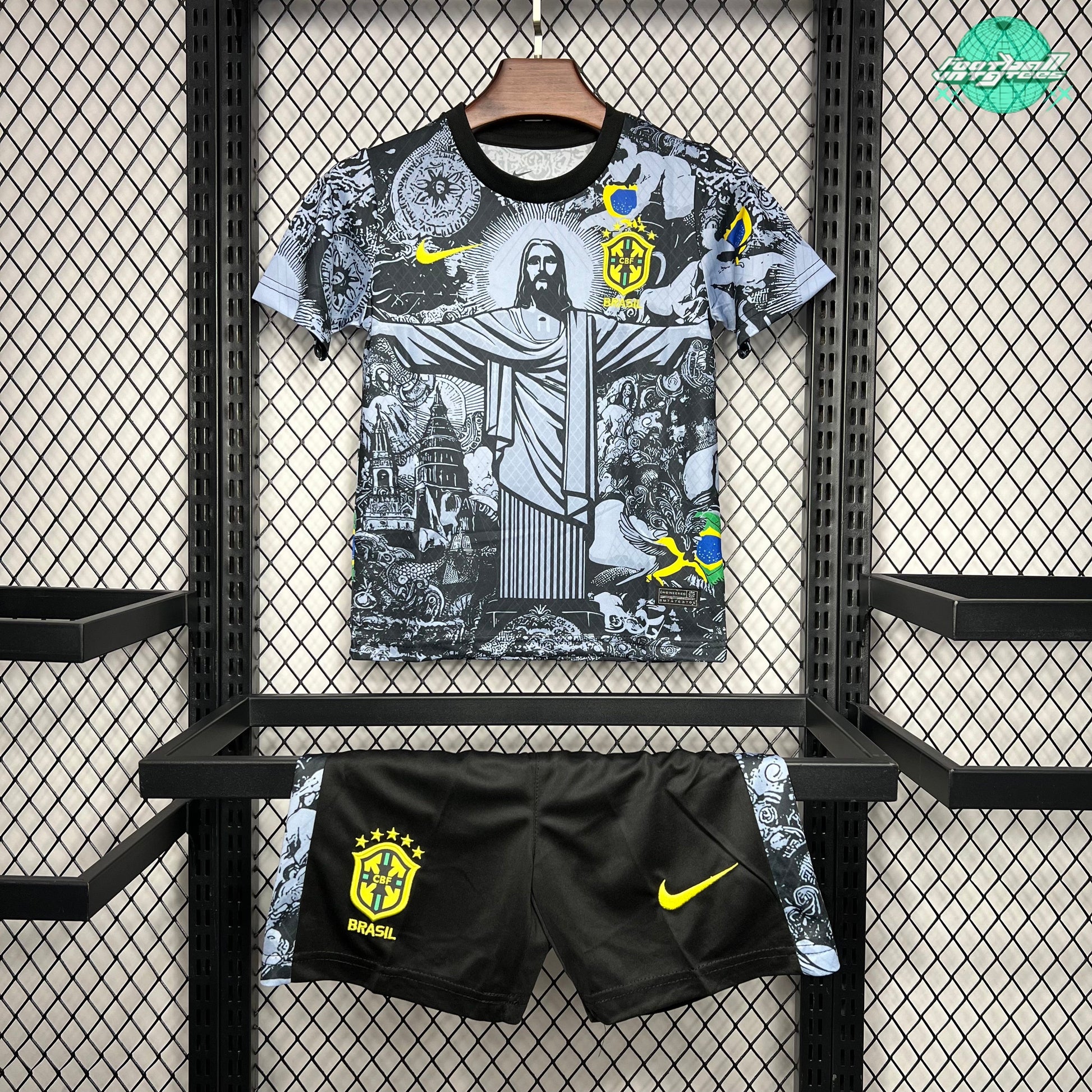 Get ready to support Brazil in style with their 2024-2025 Special Blue/Black Jesus Children Kit. This Brazil Kit is made from high-quality materials & features a sleek and modern design in dynamic blue colorway with the iconic Brazil crest.