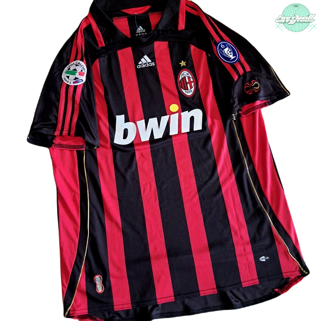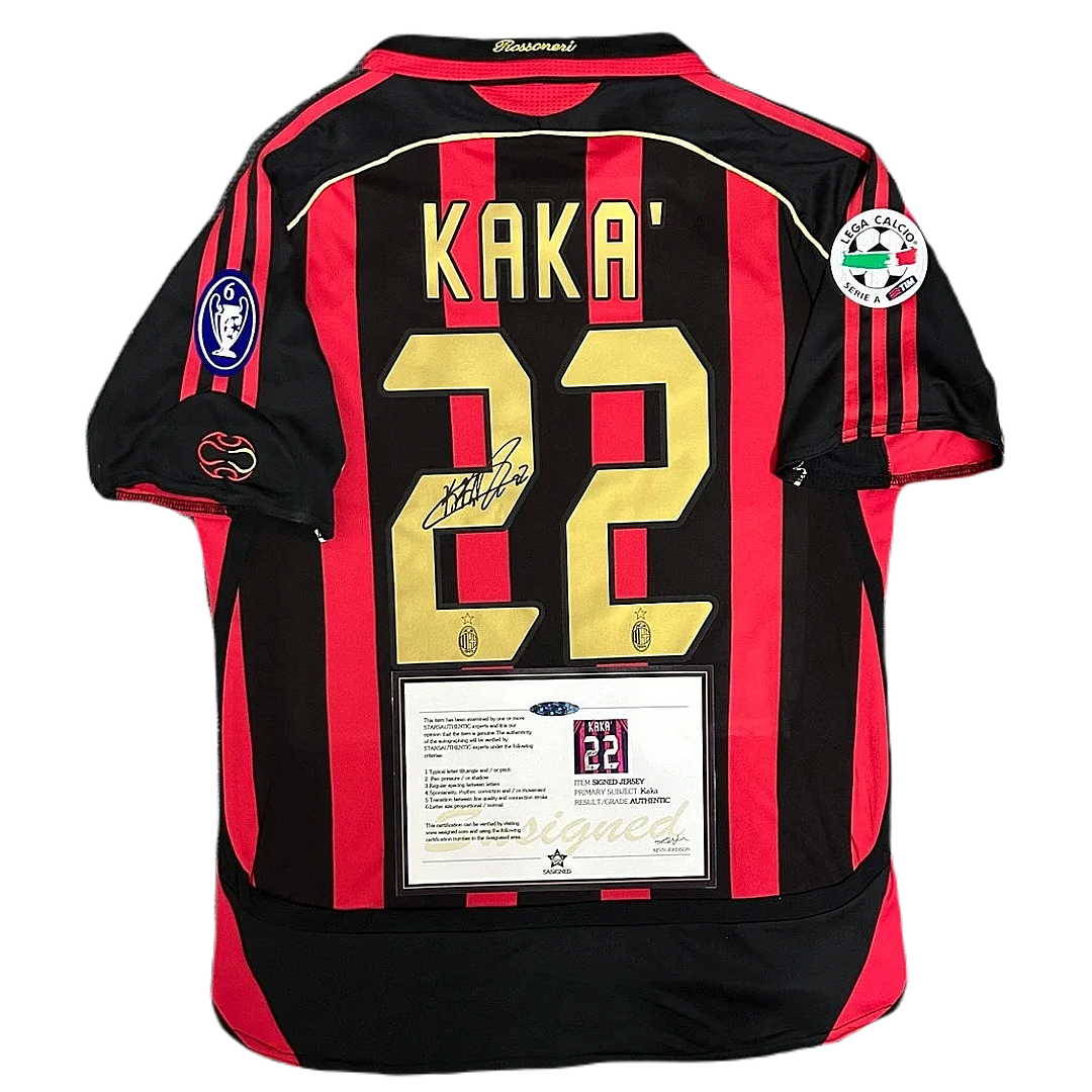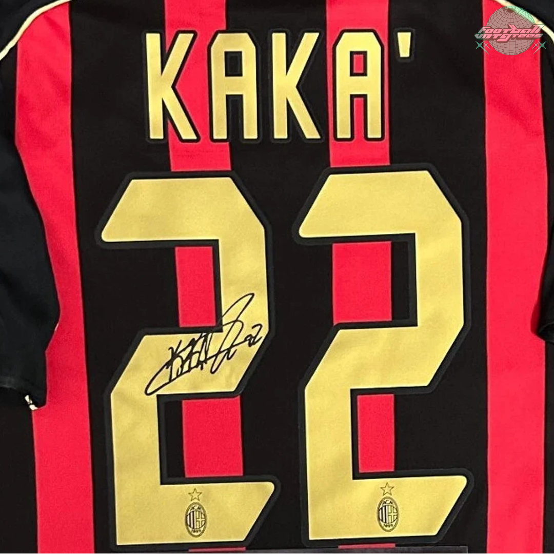 This shirt is a must-have for any fan or collector, reminiscent of Kaka's & AC Milan's iconic season of 2006-2007. In the 2006-2007 season AC Milan won the UEFA Champions League, secured fourth place in Serie A, and clinched the Italian Super Cup. Now, you can own this meticulously crafted jersey featuring Kaka's engraved signature!