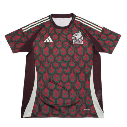 Mexico had been wearing maroon red kits as home shirts in the 1930s, 1940s, and 1950s, while they switched to green home kits in 1958. An all-over pattern of peacock feathers creates a unique look for the Mexico 2024 home kit. A pattern is inspired by the Mexican/Mayan myth of the peacock, as a tribute to this beautiful bird.