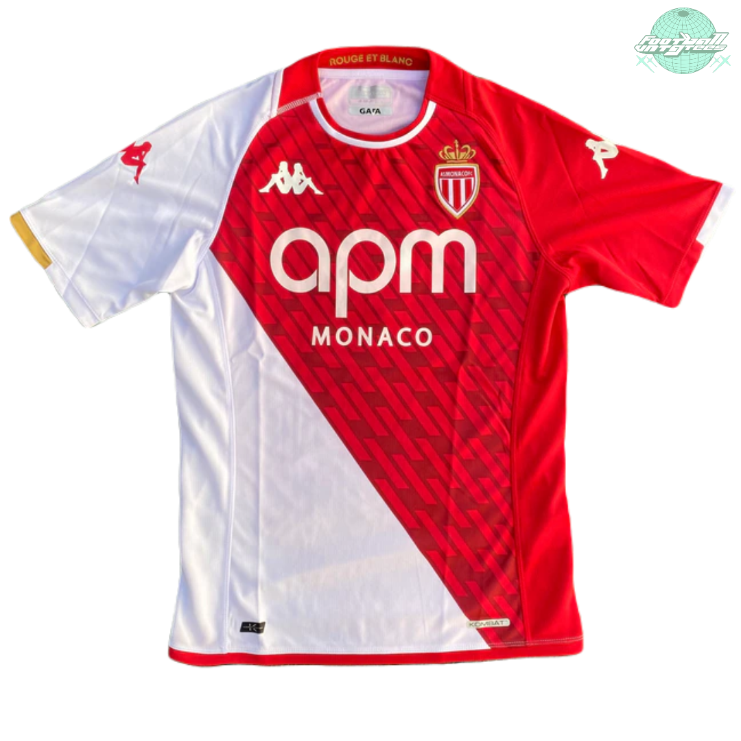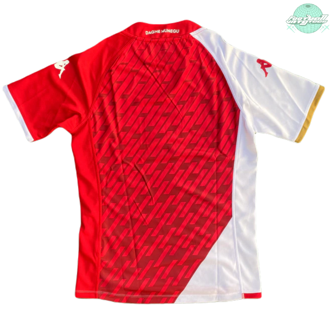 Get ready to support Monaco in style with the 2024-2025 Home Jersey! The Monaco Football Club 24-25 home shirt represents a link between the past and the present, with the official 100th anniversary logo of AS Monaco appearing under the collar on the back of the shirt. Inside the collar is the slogan "Daghe Munegu" in red letters.