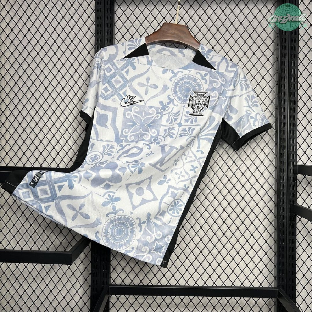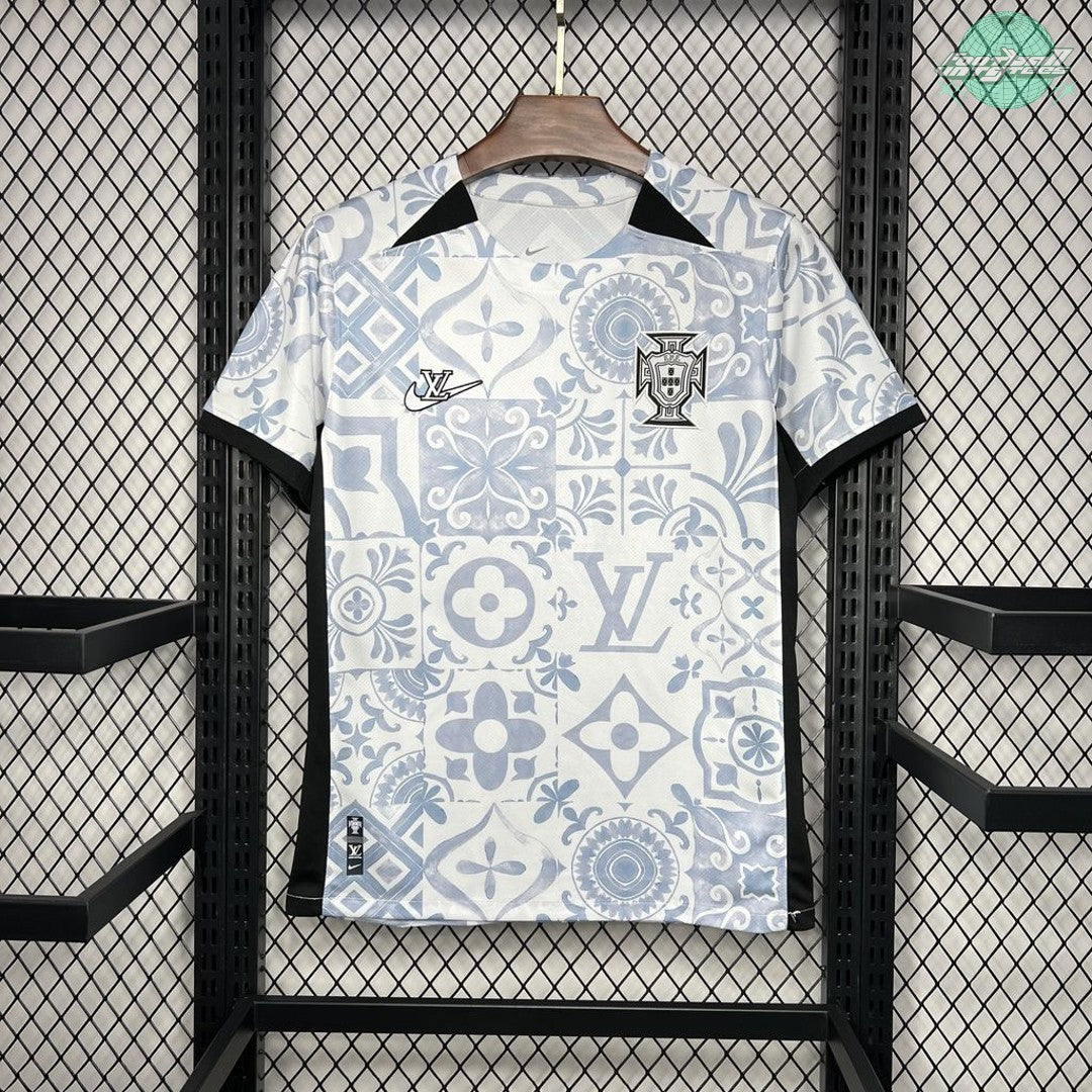 Get ready to support Portugal in style with the 2024-2025 Special designer Jersey! This Portugal x LV Kit is made from high-quality materials & features a sleek and modern design with the iconic Portugal crest and the fierce LV light blue graphics.