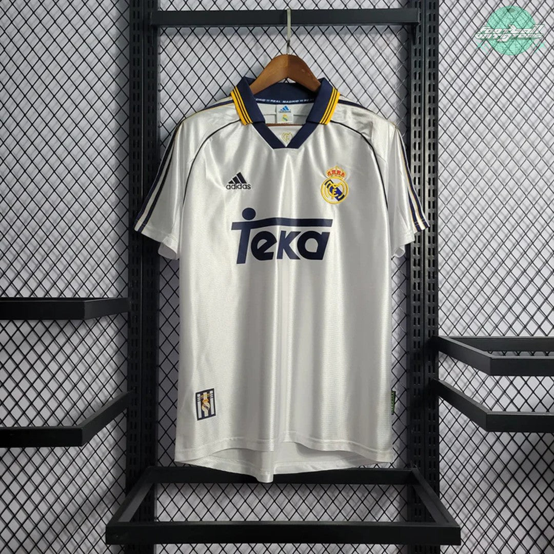 Get ready to support Real Madrid in style with their 1998/99 Vintage Home Jersey. This Kit is made from high-quality materials & features a sleek and modern design in predominatly Black colorway with the iconic Real Madrid crest.