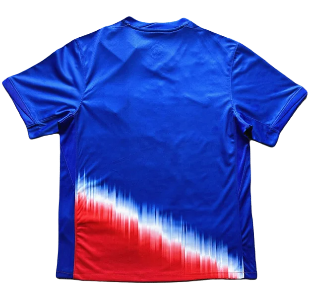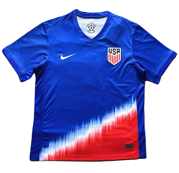 What lets the USA 2024 Copa America away kit stand out is a graphic design on the lower part. It comes with a tri-color on the bottom, going from blue to red, with a striking white zig-zag design.