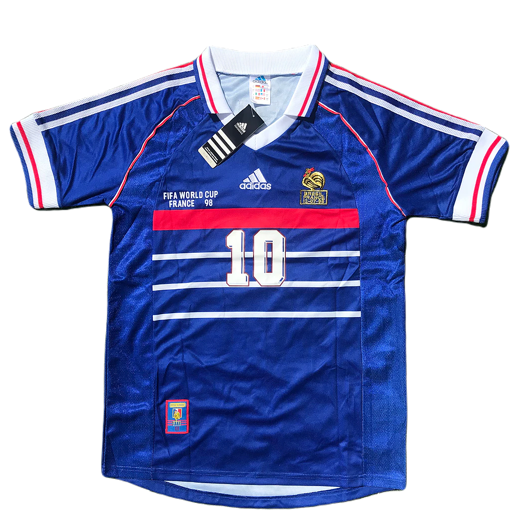 This shirt is a must-have for any fan or collector of Zidane. The France 1998 World Cup home jersey is one of the most iconic football shirts in history, primarily because it was worn by the French national team when they won their first World Cup on home soil. The jersey is notable for its classic and elegant design, which embodies the national colors and pride.